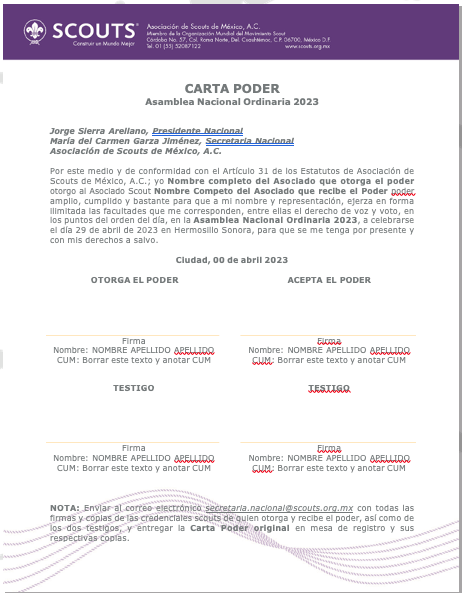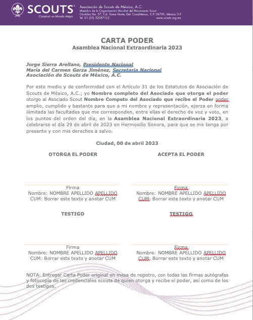 La carta poder deberá presentarse conforme al Artículo 31 últimos párrafos de los Estatutos con los siguientes requisitos: